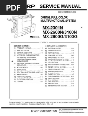 Sm Sharp Mx3100n Pdf Equipment Manufactured Goods